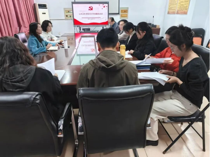为深入贯彻落实学校全面从严治党向纵深发展的工作要求,切实筑牢党员干部拒腐防变的思想防线,近日,公共卫生学院严格按照校党委统一部署,有序开展2025年度廉政谈话工作,学院科级以上干部、业务科室负责人全部参与谈话。